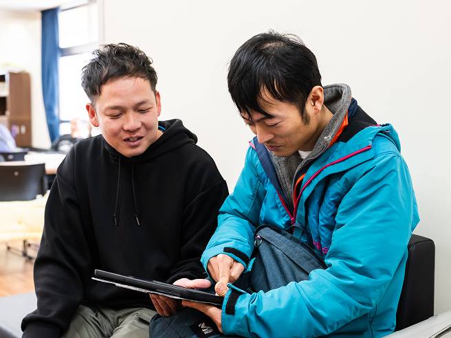 法人全体で行う研修のほか、経験年数ごとの研修があります。1、2年目は基礎的な内容を、3年目からは専門的な内容を学び、利用者支援のスキルを磨いていきます。