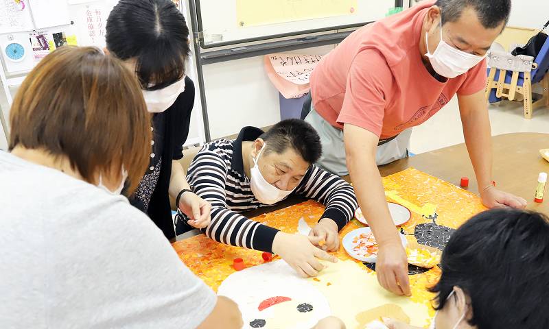 机上でできる創作活動や園芸は、腕や手先といった主に上半身を使う活動です。季節ごとの掲示物のほか、イベント用に大きな創作を行うこともあります。
