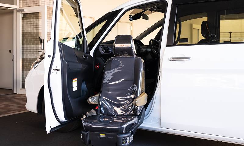 助手席のシートが回転、リフトアップする車輛で、身体への負担を軽減し安全に乗降できます。