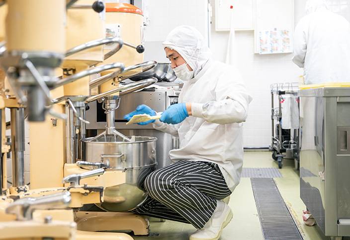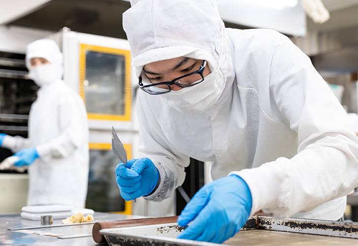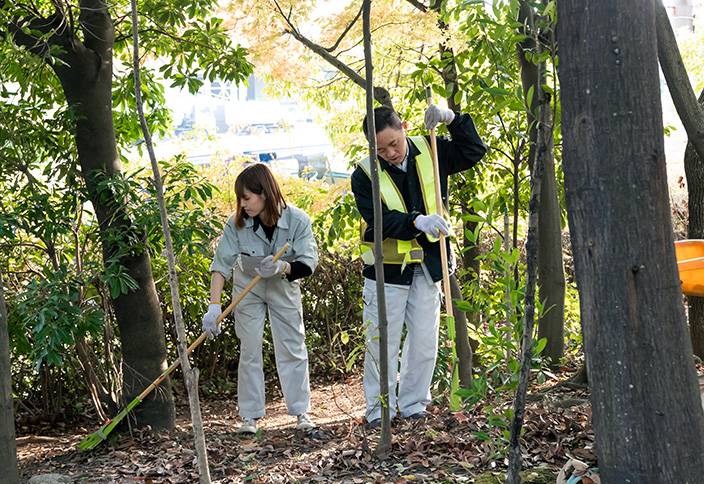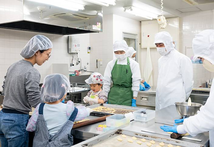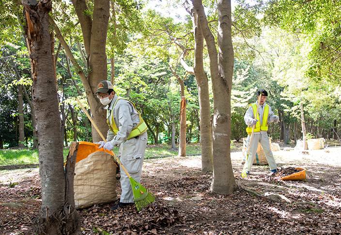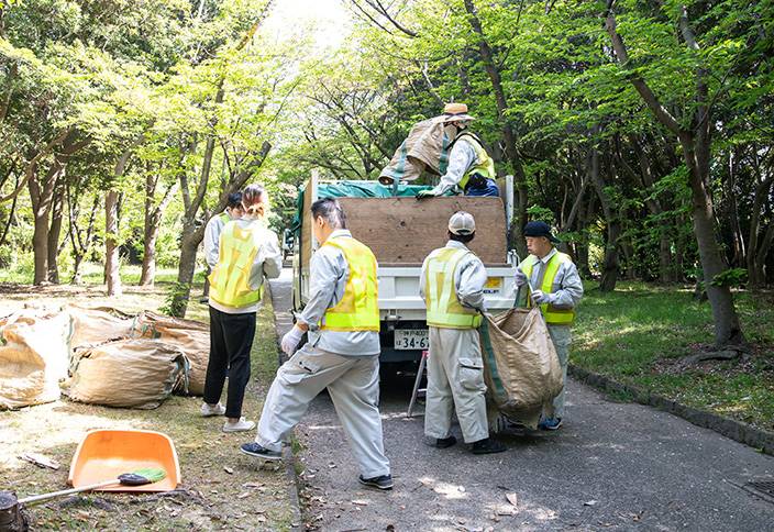 屋外班と菓子班、2つの班で構成しています。自立度が高い利用者さんが多く、「働く」ことに重点をおき、どの作業も日々利用者さんと職員が一体となって働いています。「お金を貯めて好きな物を買いたい」「ほめられたい」「頑張りを認められたい」—働く理由は人それぞれ。利用者さんの働くモチベーションを大切に、作業ではひとりひとりの得意なことを活かせる作業設定を心がけて支援しています。
