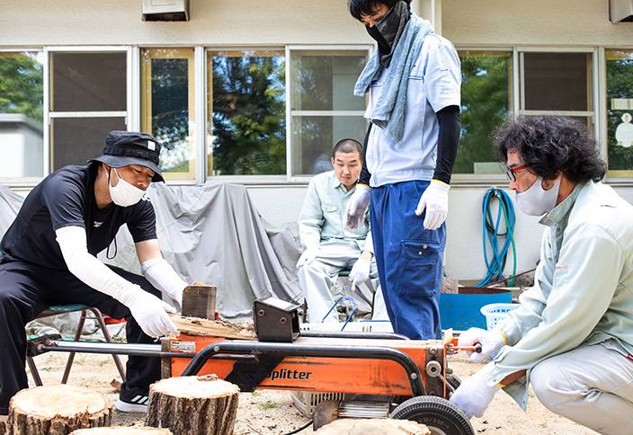 資源回収や除草作業を通して地域の方との交流や、近隣の学校との交流会、他法人・団体が主催するイベントでの自主製品販売など、利用者さんが地域の方と関わり活動できる機会を作っています。