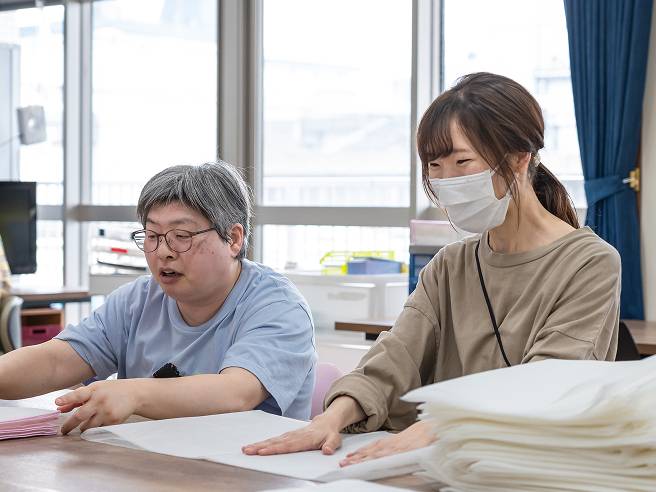 袋詰めや後片付け、掃除までほとんどの工程に利用者さんが携わっています。
