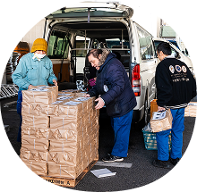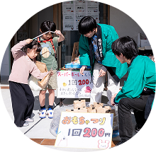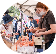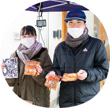 十日えびすをはじめ、県や市、地域の自治体が主催するイベント、市内の学校の文化祭などいろいろな販売に参加しています。十日えびすでは利用者さんも販売に立ち、お客さんとのやりとりや商品が売れることでやりがいにつながっています。