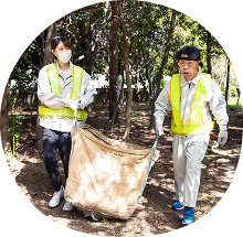 西宮市から委託いただき、武庫川河川敷の除草、集草作業や、鳴尾浜臨海公園といった市内の公園の清掃を通年で行っています。