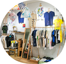 販売スペースを広げ「夏の雑貨展」を開催しています。また、おつきあいのあるお店の雑貨展にも出展し、利用者さんによる公開制作や映像を流して、あとりえの活動をより広く知ってもらえる機会を作っています。(名古屋・篠山など)